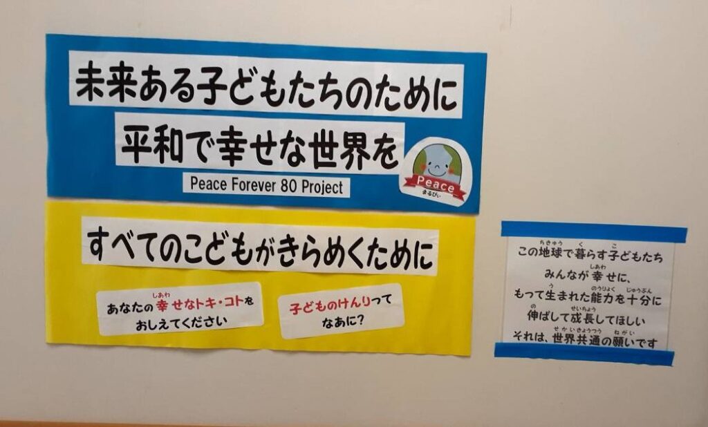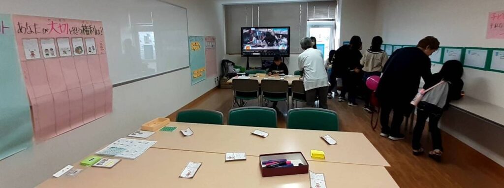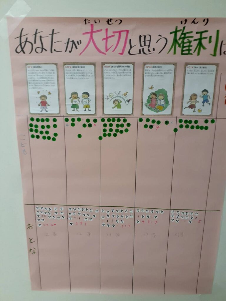 11月2日の「子どもの権利条約のワークショップ」にはたくさんの子どもたちが参加してくれました。クイズ形式で子どもの権利条約を知ってもらい、「あなたが大切と思う権利」をシール投票してもらいました。