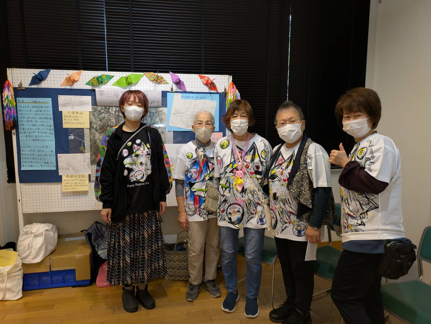 春「平和コンサート」夏「平和をつなぐピースフェスタ」など、PeaceFoever80 projectの今までの取り組みを紹介しました。「君津の市街地の戦跡地図」の展示では当時の君津の様子をご存じの方から、貴重な体験をお聞きすることができました。